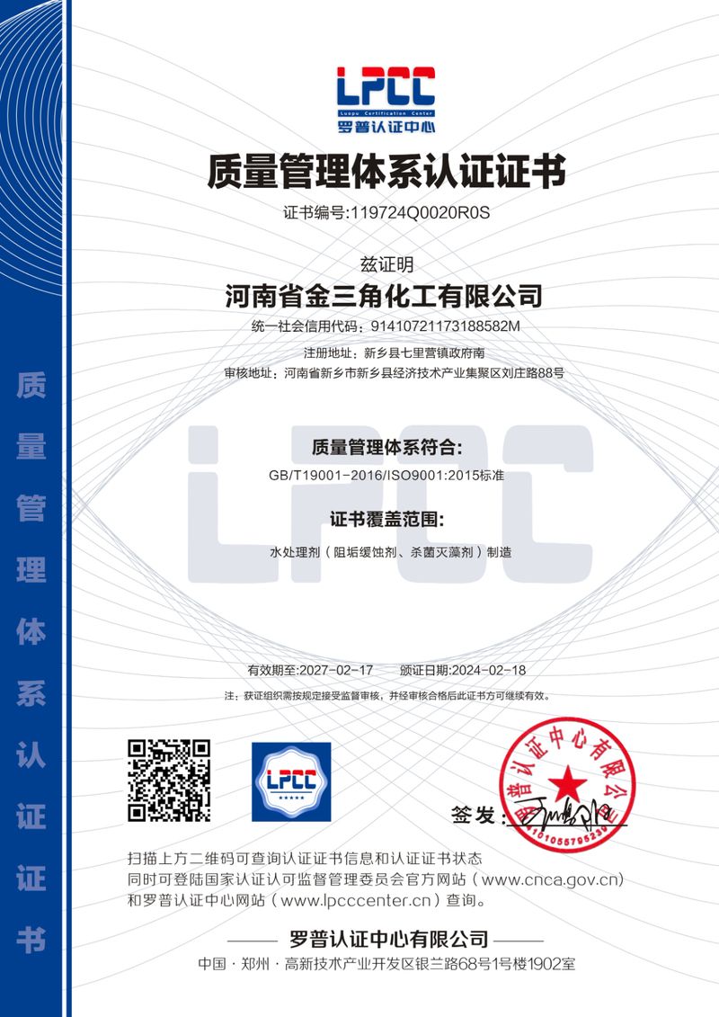 质量管理体系认证证书